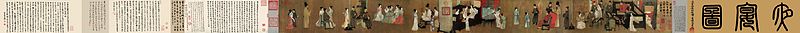 简介: 《韩熙载夜宴图》,据宋《宣和画谱》所载为五代十国南唐画家顾闳中的作品,现存此本摹于宋代,元代汤垕《画鉴》、清代孙承泽《庚子消夏记》、顾复《平生壮观》、《石渠宝笈初编》等书皆着录,为中国十大传世名画之一。清末流出宫外,1945年,张大千以500两黄金的钜款购得,现藏于北京故宫博物院。据记载,南唐的周文矩亦作《韩熙载夜宴图》,元朝时两作俱在,现今仅存顾本传世。另有唐寅摹本,现收藏于重庆中国三峡博物馆。