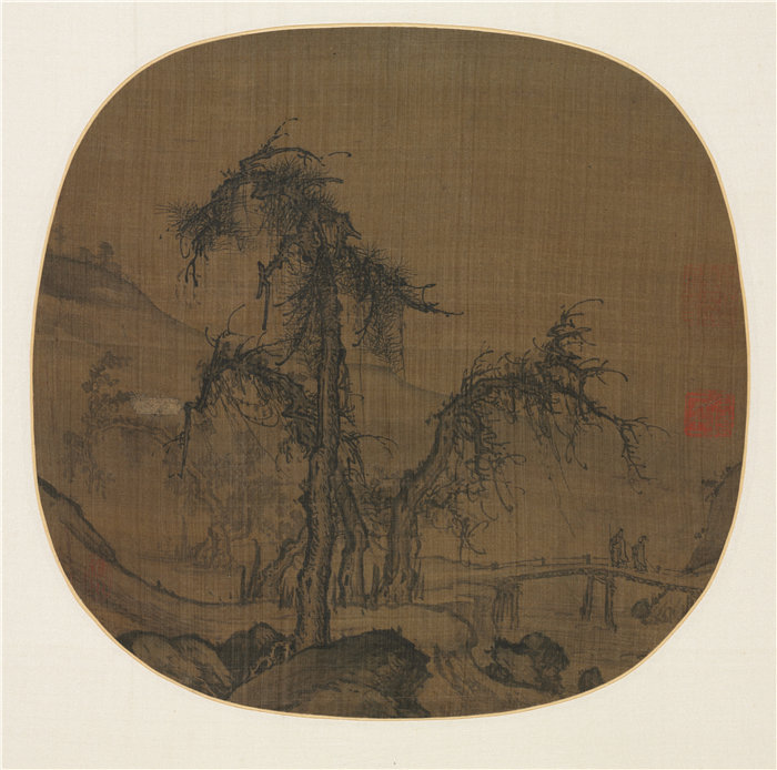 中国元朝画家王蒙作品-《在松树下》 国画高清作品