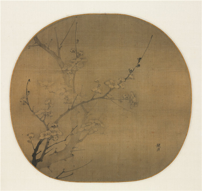 中国元朝画家彦辉-《月梅图》 国画高清作品