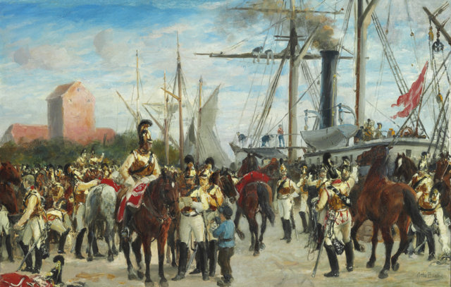 简介: 艺术家:奥托·巴奇 (1839–1927) 标题:丹斯克语: Studie til“ Horsgarden indskibes iKors?r1848” 英语:皇家救生员于1848年进驻科索尔。 对象类型:绘画 描述: 丹斯克语: “ Hestgarden indskibes iKors?rHavn代表1848年乞讨签名 英语:皇家救生员于1848年登上Kors?r,前往战场。研究 日期:约1888年 介质:布面油画 外型尺寸:高度:33厘米(12.9英寸); 宽度:50厘米(19.6
