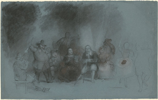 简介: 阿舍·布朗·杜兰德(Asher Brown Durand)-关于“在彼得·斯图维森特在场的情况下进行电池舞蹈”的研究 1838年作品