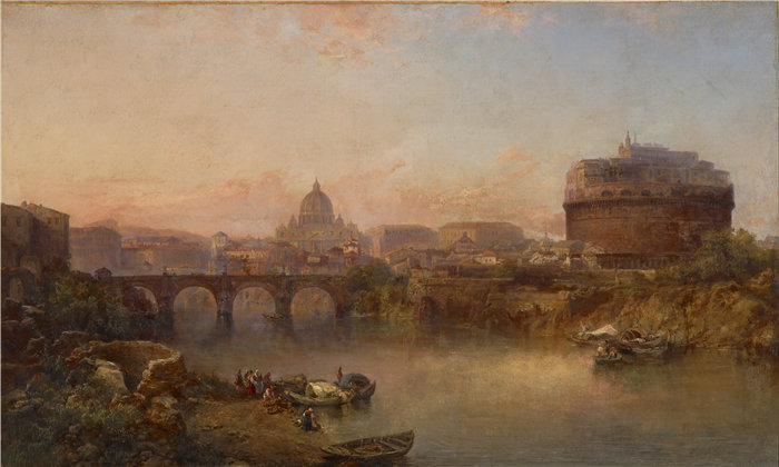 简介: 乔治·洛林·布朗(George Loring Brown,美国,1814-1889 年)-罗马台伯河的日落