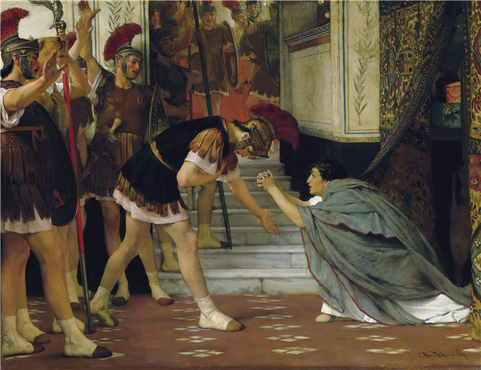 简介: 劳伦斯·阿尔玛·塔德玛(Lawrence Alma-Tadema,荷兰画家)作品--宣布克劳狄斯皇帝,作品 XlVIII (1867)