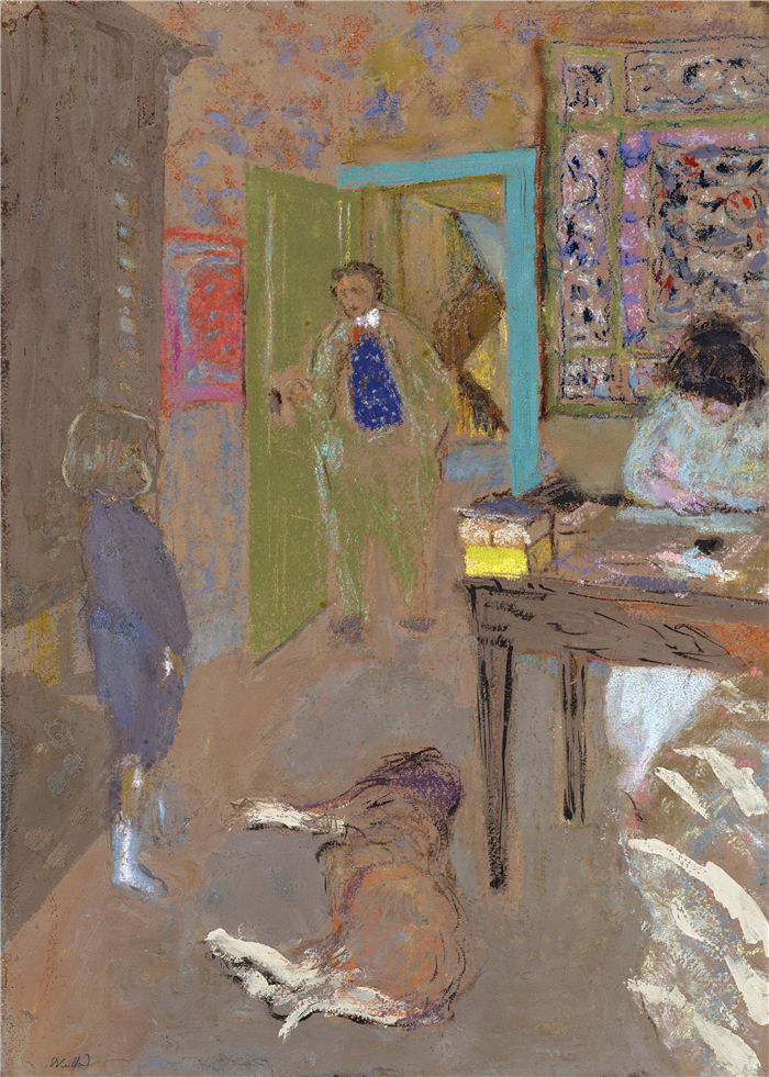 简介: 爱德华·维亚尔(Édouard Vuillard,法国画家)作品-圣雅克 (Saint-Jacut) 的内部 (1909)