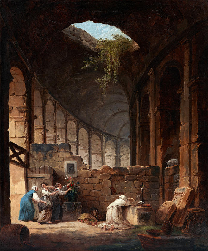 简介: 休伯特·罗伯特(Hubert Robert,法国画家)作品-斗兽场中的隐士(1790)高清下载