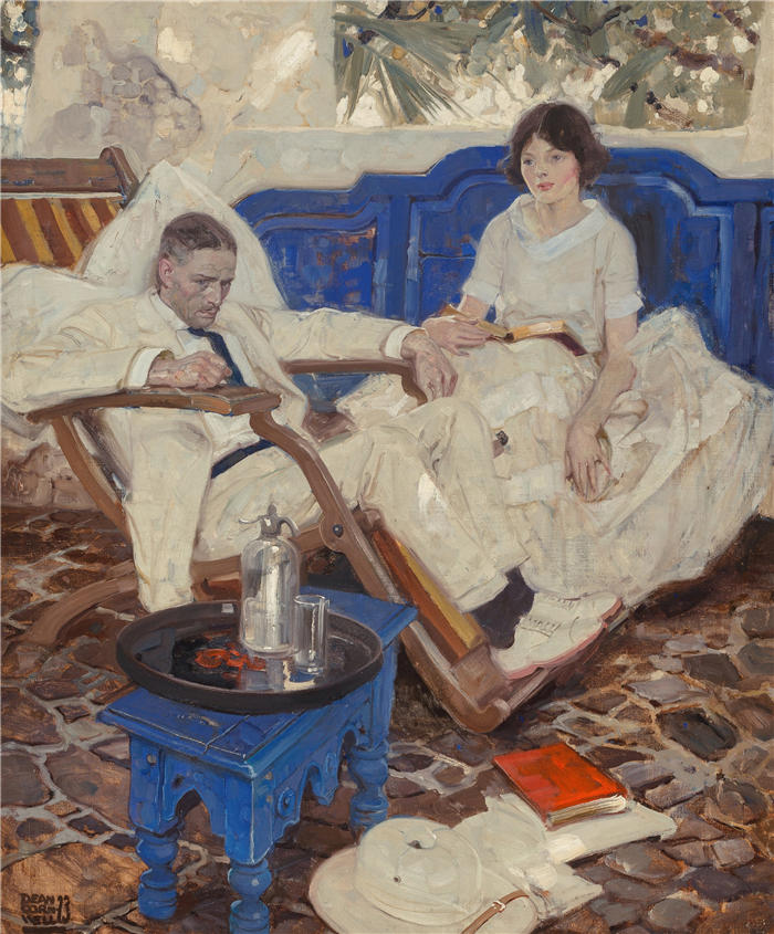 简介: 迪恩·康威尔(Dean Cornwell,美国画家)作品-“Gad,”Heseltine 对 Peril 说,“如果医生只能让我坚持下去,”(1923 年)