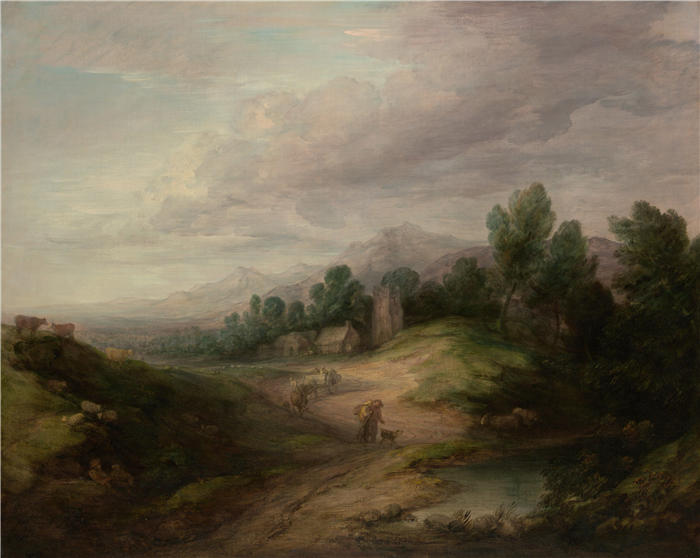 简介: 托马斯·庚斯博罗(Thomas Gainsborough,英国画家)高清油画作品-《树木繁茂的高地景观(1783)》
