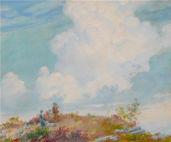简介: 查尔斯·考特尼·柯伦(Charles Courtney Curran,美国画家)高清作品-《山上的粉红云 (1925)》