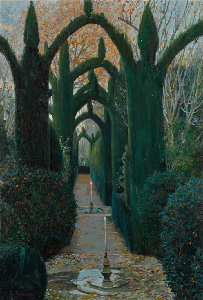 简介: 圣地亚哥·鲁西尼奥尔(Santiago Rusiñol,西班牙画家)高清作品-《格拉纳达赫内拉利费花园》