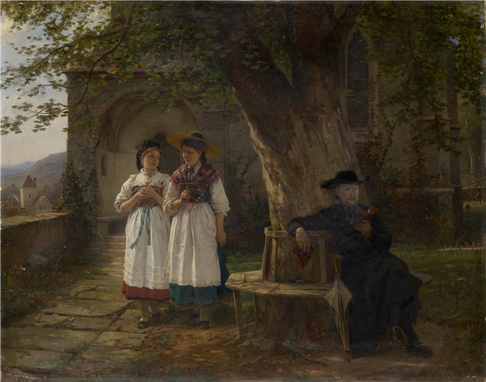简介: 本杰明·沃蒂埃(Benjamin Vautier ,瑞士画家,1829-1898)作品-无意的告白(1881)