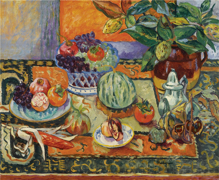 简介: 亨利·夏尔·芒更(Henri Charles Manguin)作品-水果静物木兰花,1946