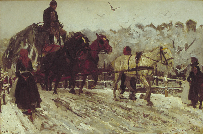 简介: 乔治·亨德里克·布莱特纳(George Hendrik Breitner)作品-雪地上的马
