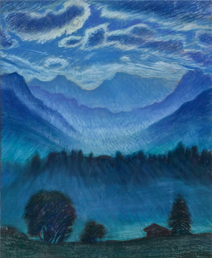 简介: 瓦尔德马· 芬克(Waldemar Fink)高清作品-阿德尔博登附近Mondnacht bei Adelboden, 1920