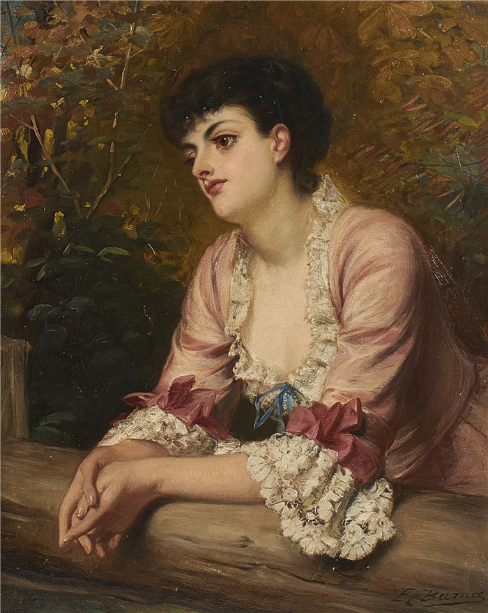 简介: 爱德华·查尔斯·巴恩斯(Edward Charles Barnes)油画-年轻女子Ung kvinna, 52x42