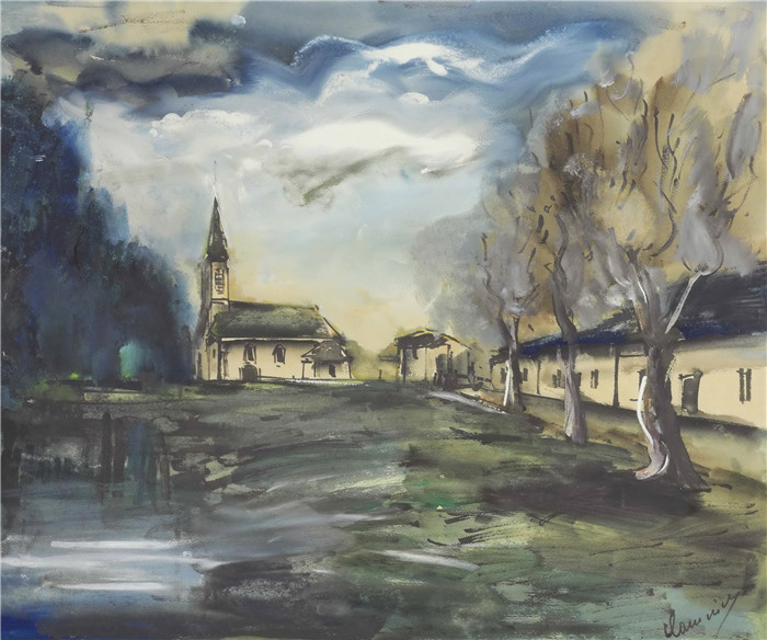 简介: 莫里斯·德·弗拉明克(Maurice De Vlaminck)作品-带教堂的村庄village avec eglise