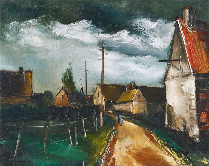 简介: 莫里斯·德·弗拉明克(Maurice De Vlaminck)作品-乡村街道Rue de Village