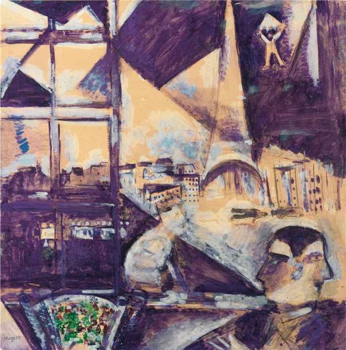 简介: 马克·夏加尔(Marc Chagall)作品-巴黎花园Paris Par Le Fenêtre, 1913