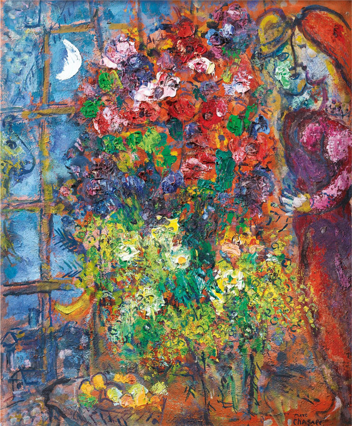 简介: 马克·夏加尔(Marc Chagall)作品-窗户前鲜花的情人Les Amoureux Aux Fleurs Devant La Fenêtre, 1960