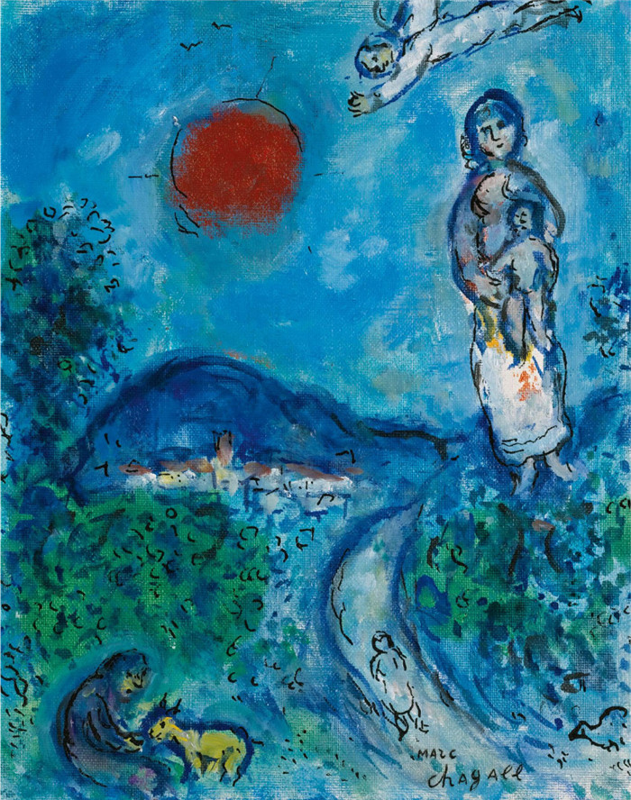 简介: 马克·夏加尔(Marc Chagall)作品-红日下的母亲Maternité au soleil rouge, 1975