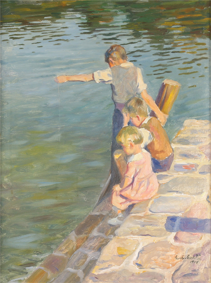 简介: 古斯塔夫·卡尔斯特罗姆(Gustaf Carlstrom)作品-桥上的孩子 1945. Barn pa brygga.