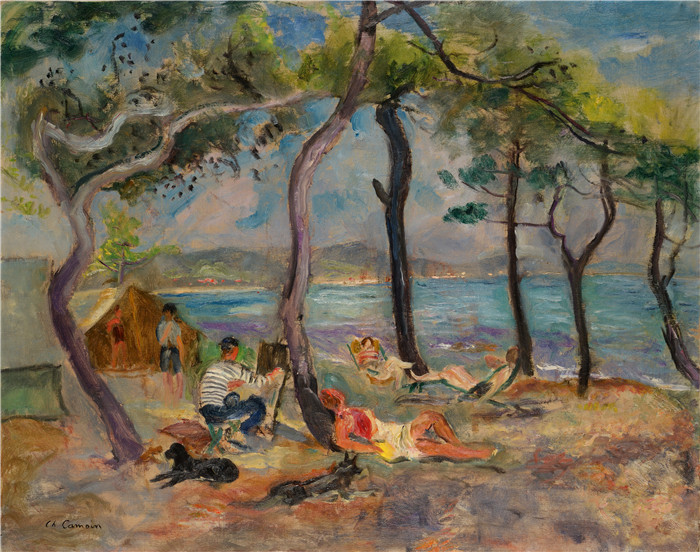 简介: 查尔·斯卡莫因(Charles Camoin)作品-海边的营地Le camp au bord de la mer aux Sardinaux,