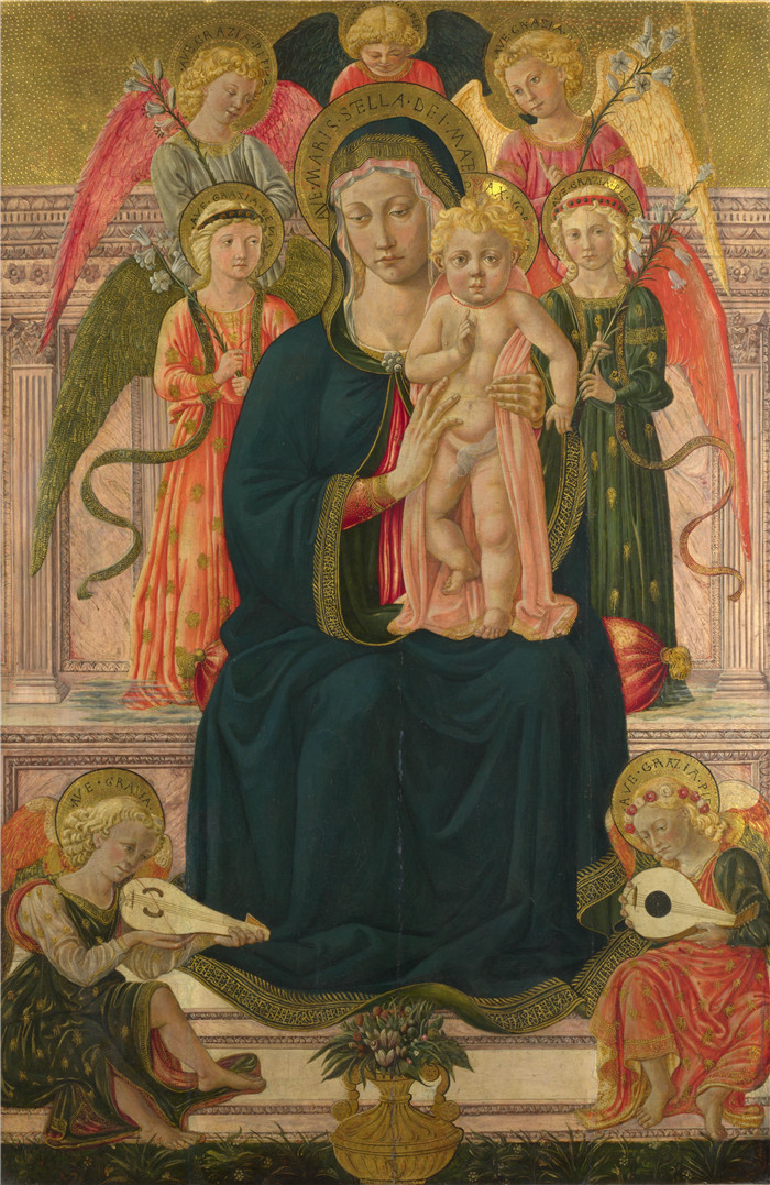 简介: 贝诺佐·戈佐利(Benozzo Gozzoli)作品-圣母和孩子与天使坐在一起The Virgin and Child Enthroned with Angels