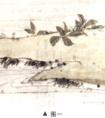五、配景一幅完整的工笔花鸟画常常是由主要内容和与之相配合的其他部分共同组合而成。在诸如宋人团扇之类折技小品中配景或许只有一枝半叶或块石、小蝶,如果是大幅作品则可能配有坡石流...