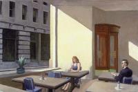1958 年 9 月,霍珀写信给他的赞助人斯蒂芬·克拉克:“我很高兴你获得了我的照片,《自助餐厅的阳光》。我认为这是我最好的照片之一。”霍珀从小就对城市餐...