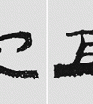 对于字中出现的两点,我们将其细分为上两点、下两点和侧两点。在每一类当中又有不同的细微变化,尤其以第二种情况变化居多。图一中,“半”字两点作“”方向行笔,显得笔势荡漾。“平...
