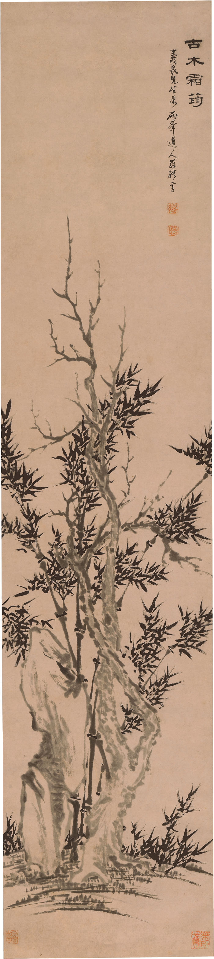 清 罗聘-《古木霜筠图轴》作