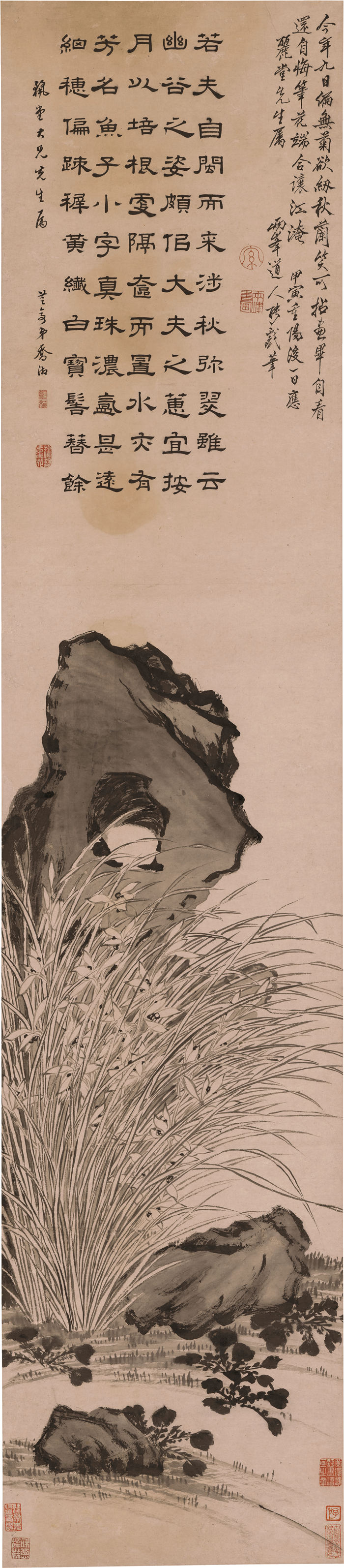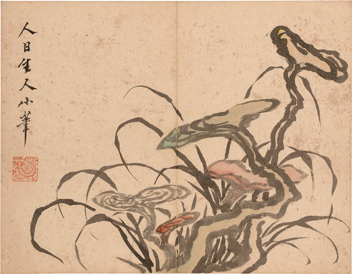 清 罗聘-《秋兰文石图轴》作