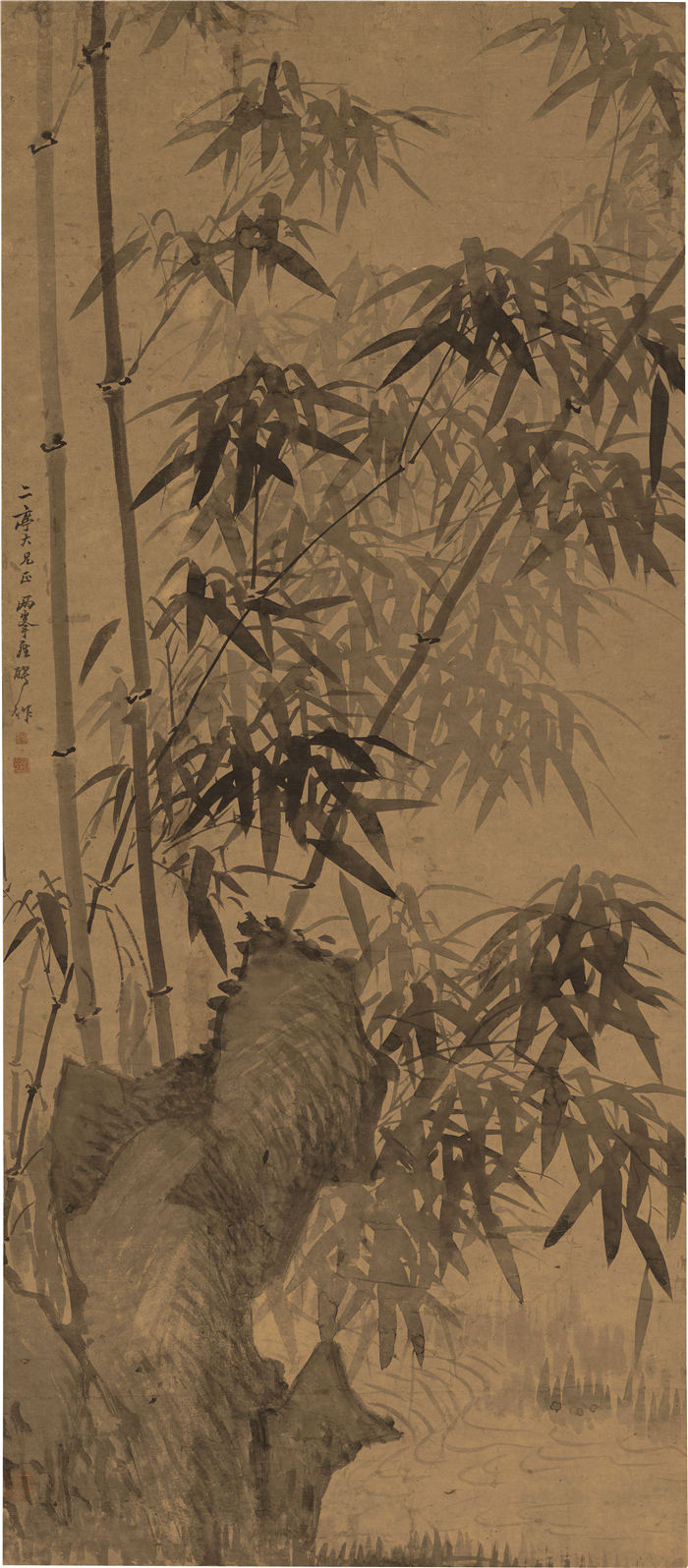 清 罗聘-《竹石图轴》作品高