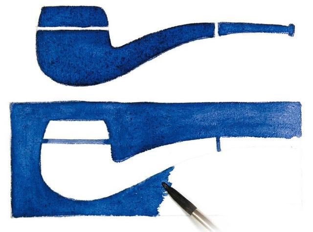 绘制两只相同的烟斗素描图后,分别用主动涂色法和被动涂色法来进行涂色练习。如果想使画面各部分的颜色保持一致的话,就需要准备足够多的颜料。