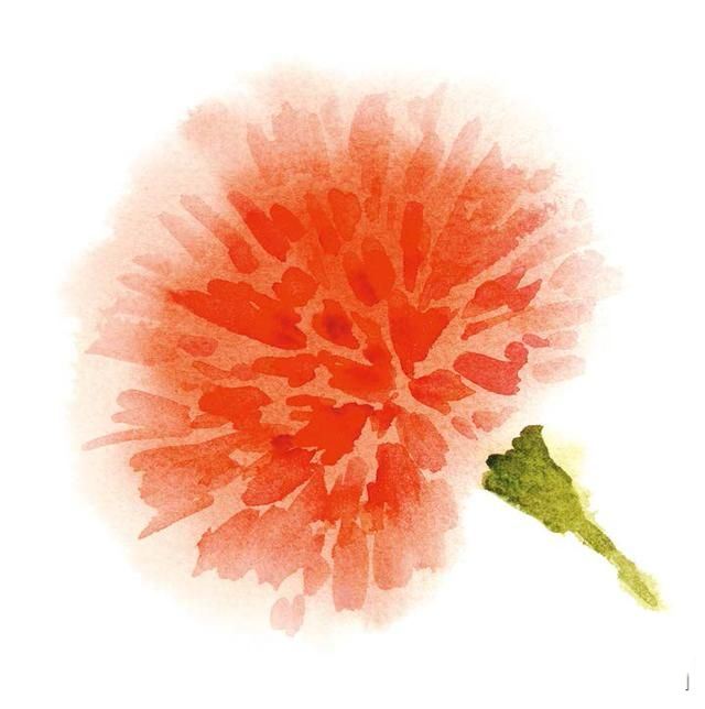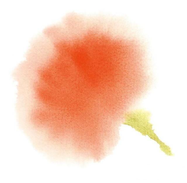 将画笔吸饱颜料后,一边观察颜料扩散的程度和形状,一边自然地运笔,勾画出花朵的轮廓。