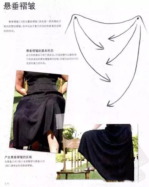 另外布料的材质也是会影响褶皱形成的重要因素。越是厚重的布料,可供褶皱产生的空间就越小,看起来就会越整齐。越薄的布料,产生褶皱就会越繁复。