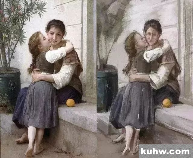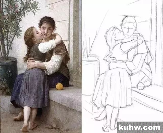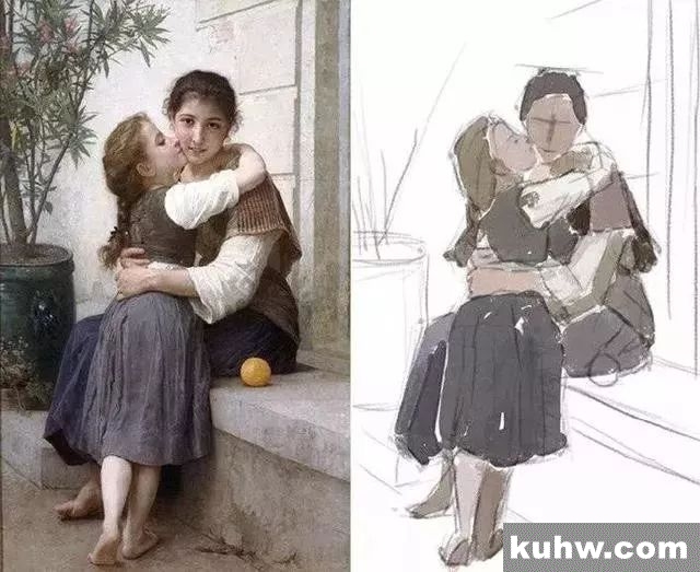 最后的调整:重点,人物五官的细致勾勒,衣服褶皱的完善,树的刻画,补足画面的一些薄弱部分,另方面是努力使画面的每个部分都富于表情和感染力。