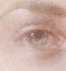 This is a detail showing how the light flows over the face with what is underneath still being visible. Do NOT paint around features like eyes, eyebrows – and don’t be afraid to paint over the entire face in order to define the light. It is the paint that shows through that gives a painting its subtle beauty of form.