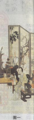 ①画面构成的装饰性。如任薰的《闺中礼佛图》(见图一),均衡、对称、平面、规律等装饰性因素在构图中运用得十分完美。
