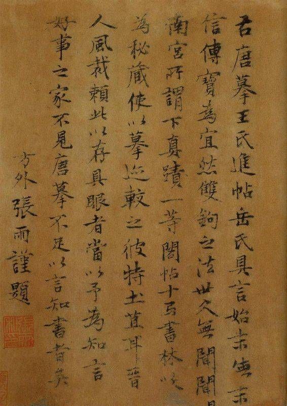 张雨《跋万岁通天帖》简介:小楷;纸本;纵不详,横不详;藏于辽宁省博物馆。