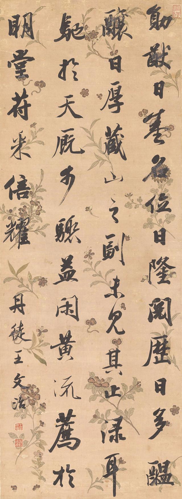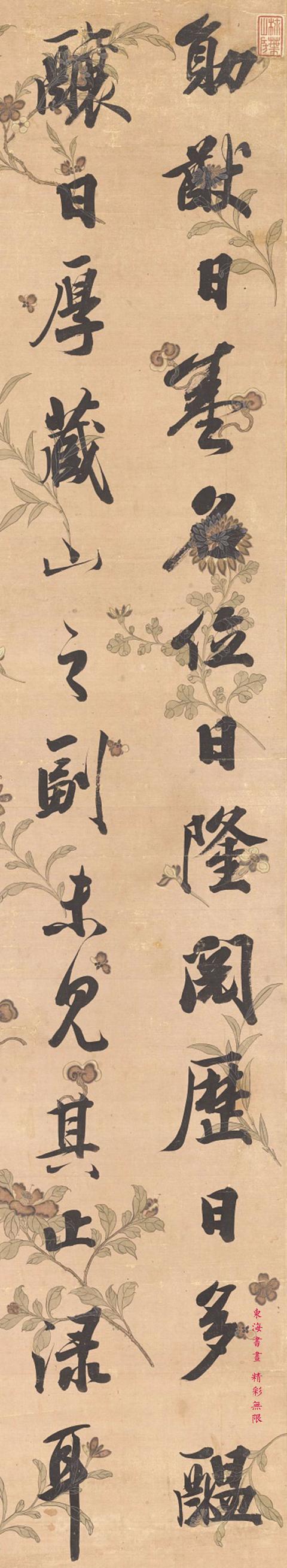 王文治 行书节录《容台文集》描花绢本立轴 作者:admin 时间:12-16 浏览: 错误报告 释文:勋猷日盛,名位日隆,阅历日多,酝酿日厚,藏山之副未见其止渌耳。驰于天厩步骤,益闲黄流,荐于明堂,苻釆倍耀。丹徒王文治。钤印:「柿叶山房」、「王文治印」、「曾经沧海」 延伸阅读: 清 钱泳行书临古圣贤帖 (六条)京剧大师梅兰芳行书《锦瑟诗》四屏明,陈继儒 草书水墨绫本 立轴元代,高僧 释雪窗 行书录李商隐《韩碑》诗册 册页 标签:行书 四屏 上一篇:清 钱泳行书临古圣贤帖 (六条) 下一篇:邢侗1567年 行书四屏 立轴 最新文章推荐 约翰·克里斯蒂安·达尔(Johan Chri 朱利安·杜佩(Julien Dupré)作品-Ha 弗雷德里克·埃德温·丘奇(Frederic 克洛德·莫奈(Claude Monet)高清作品 克洛德·莫奈(Claude Monet)作品《戴 清 王翚《良常山馆图》 纸本高清作 留言与评论(共有 条评论) 验证码: