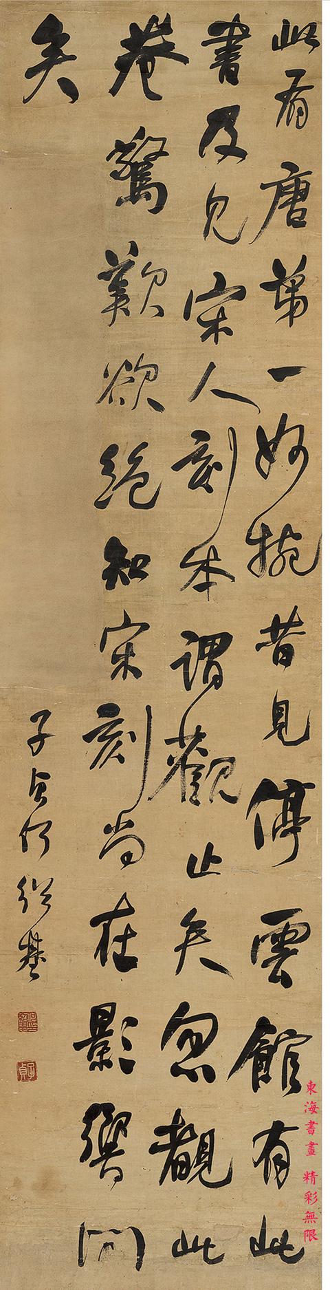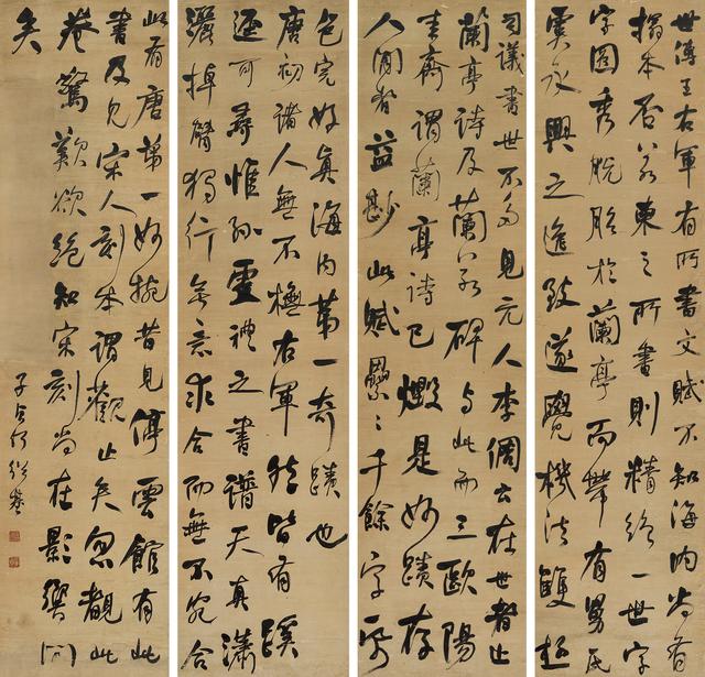 释文:世传王右军有所书文赋,不知海内尚有拓本否。若柬之所书,则精绝一世。字字圆秀,脱胎于兰亭而带有其舅氏虞永兴之逸致,遂觉机法双极。司议书世不多见,元人李倜云在世者,止兰亭诗兰若碑,与此而三。欧阳圭斋谓兰亭诗已毁,是妙迹存人间者益鲜。此赋累累千餘字,纸色完好,真海内第一竒迹也。唐初诸人无不橅右军,然皆有蹊径可寻,惟孙虔礼之书谱,天真瀟洒,掉臂独行,无意求合,而无不宛合,此有唐第一妙腕。昔见停云馆有此书,及见宋人刻本,谓观止矣。忽睹此卷,惊叹欲绝,知宋刻尚在影响间矣。