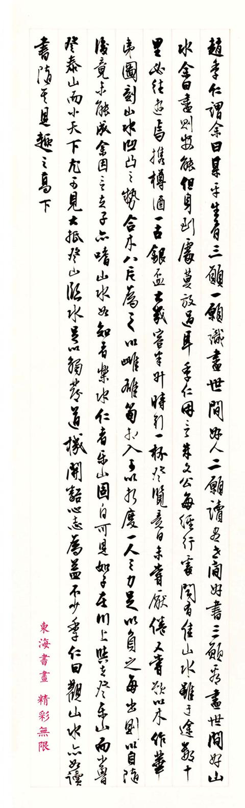 赵季仁谓余曰:“某平生有三愿:一愿识尽世间好人,二愿读尽世间好书,三愿看尽世间好山水。”余曰:“尽则安能,但身到处莫放过耳。”季仁因言朱文公每经行处,闻有佳山水,虽迂途数十里,必往游焉。携樽酒,一古银杯,大几容半升,时引一杯。登览竟日,未尝厌倦。又尝欲以木作《华夷图》,刻山水凹凸之势,合木八片为之,以雌雄笋相入,可以折,度一人之力,足以负之,每出则以自随。后竟未能成。余因言夫子亦嗜山水,如“知者乐水,仁者乐山”,固自可见。如“子在川上”,与夫“登东山而小鲁,登泰山而小天下”,尤可见。大抵登山临水,足以触发道机,开豁心志,为益不少。季仁曰:“观山水亦如读书,随其见趣之高下。”