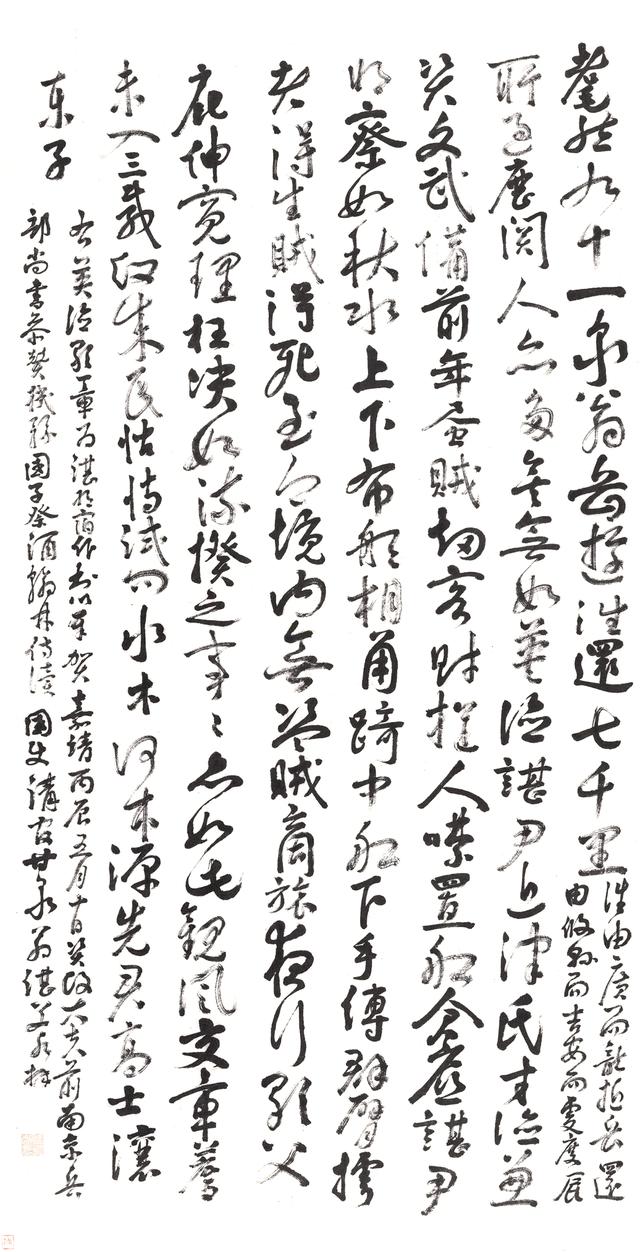 本幅书法是湛若水九十岁高龄时所创作的自作诗,盛赞英德县尹谌氏治政有方,勤于职守,为百姓所爱戴。长篇两百余字,行笔疏密得体,流动潇洒,大小结字布白错落有致,收放自如,看不到丝毫衰年颓唐气息。老来健笔,超脱胜妙,是一件难得的明代学者书法佳构。