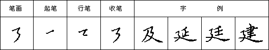 (二十二)竖折折钩 下笔写短竖,顿笔折向右写横,再顿笔折向左下写竖钩。注意竖钩既不能太直,也不能太斜,钩要小,要出尖。如图: