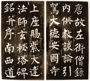 日前,寿侃先生通过友人约我小叙。他是位外科医生,精于医道外,还在杏林艺林双耕耘,在艺坛恩师朱复戡先生指点下,诗书画印都有相当造诣;更喜收藏,数十年来乐此不疲。他告诉我《大达法师玄秘塔碑》全称《唐故左街僧录内供奉三教谈论引驾大德安国寺上座赐紫大达法师玄秘塔碑铭并序》。大达法师俗姓赵,法名端甫,是晚唐高僧。据《高僧传》载,他曾“率缁属迎真骨于灵山,开法场于秘殿,震动朝野”,掌内殿法仪10年,地位极高。唐文宗开成元年(公元836年)圆寂。谥“大达”,为建玄秘塔安放灵骨。五年后,宰相裴休撰《玄秘塔铭》,柳公权(时任太子少傅)书写并篆额,邵建和、邵建初刻碑,共28行,每行54字。此碑现保存在西安碑林。
