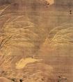 芦雁图 明 林良 此图描绘了两只向下飞翔的大雁,前后相随,似要降于水面。其身姿矫健,羽翼丰满,形象栩栩如生。作品中笔法宛转顿挫,放而不粗,风格沉着雄浑,表现出了大自然中的...
