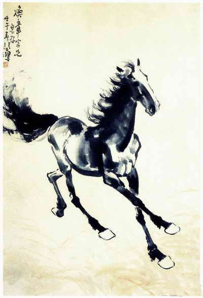 马,是徐悲鸿先生一生中最爱描绘的题材。他画的奔马,笔墨淋漓潇洒,带着时代的风雷驰骋在画坛上,给当时的中国画坛带来了清新、有力、刚劲的气息。如今徐氏故乡――江苏宜兴市新建的“宜兴徐悲鸿纪念馆”里,陈列了徐悲鸿先生在各个不同历史时期的书画作品(包括青少年时期的习作、成名以后的作品、信扎等)。他画的马,无论奔马、立马、走马、饮马、群马,都赋予了充沛的生命力。