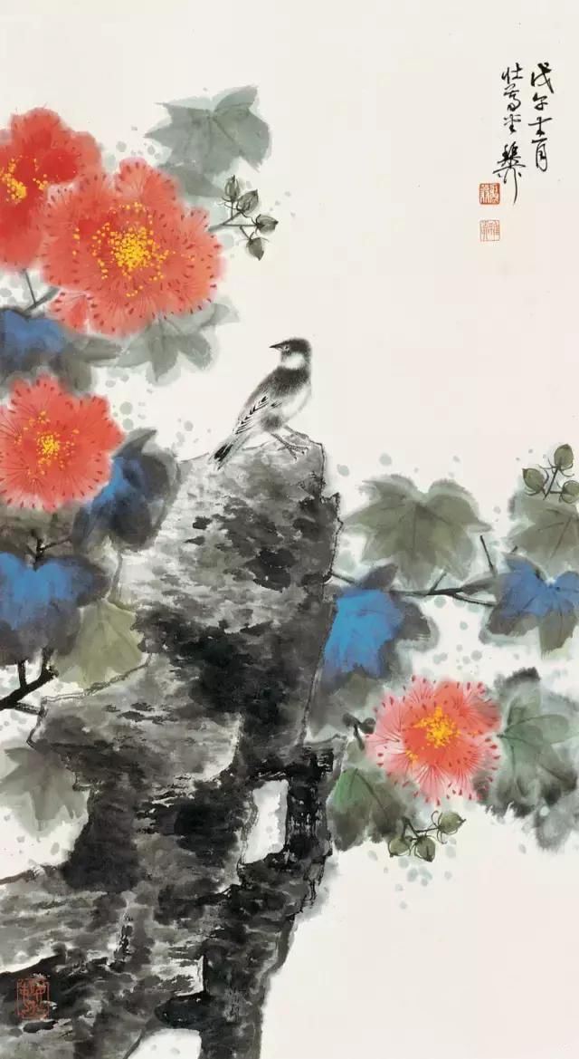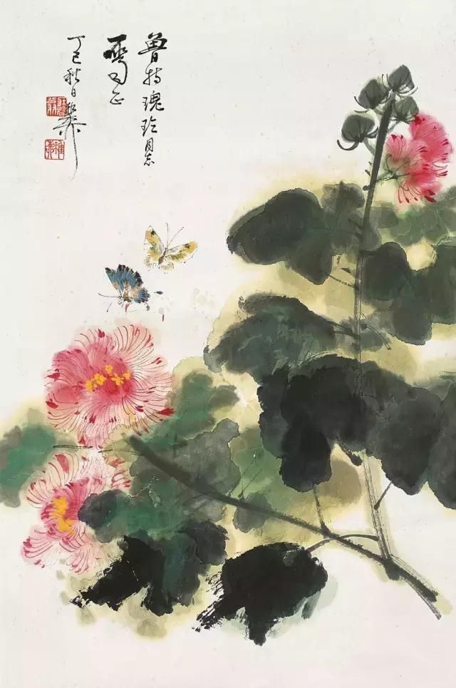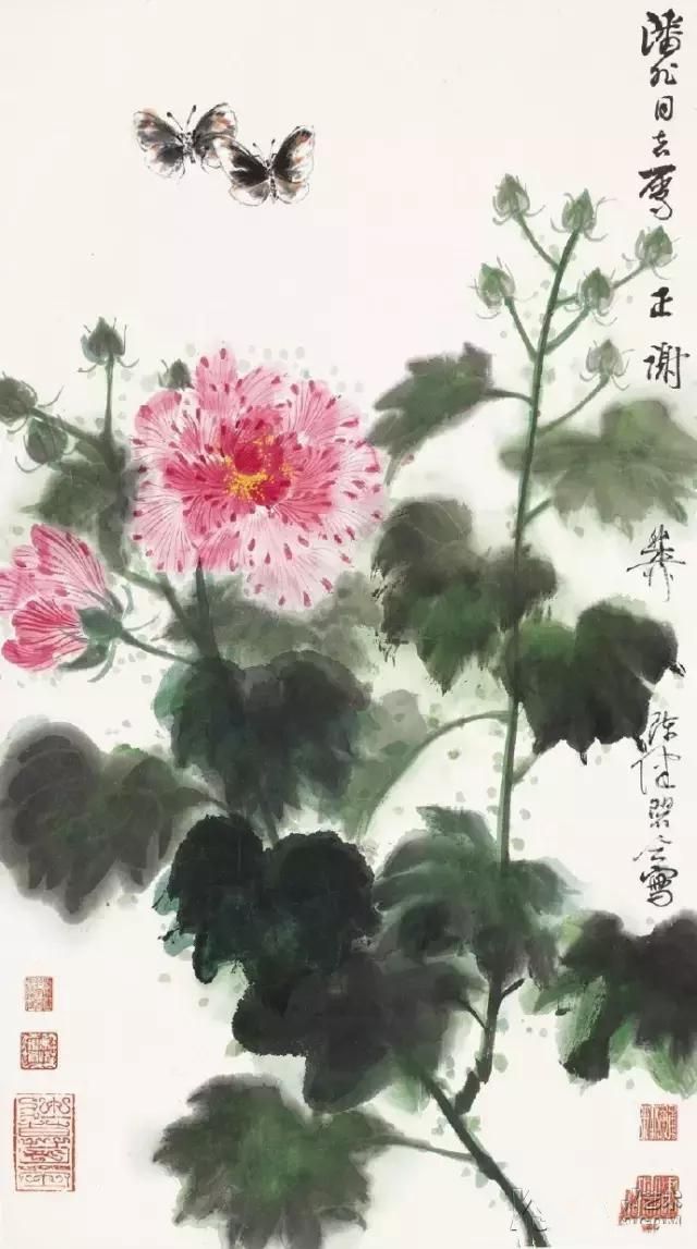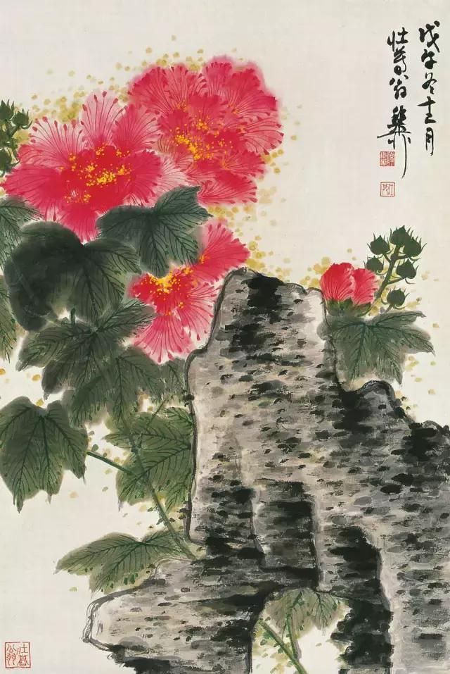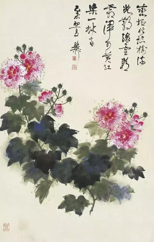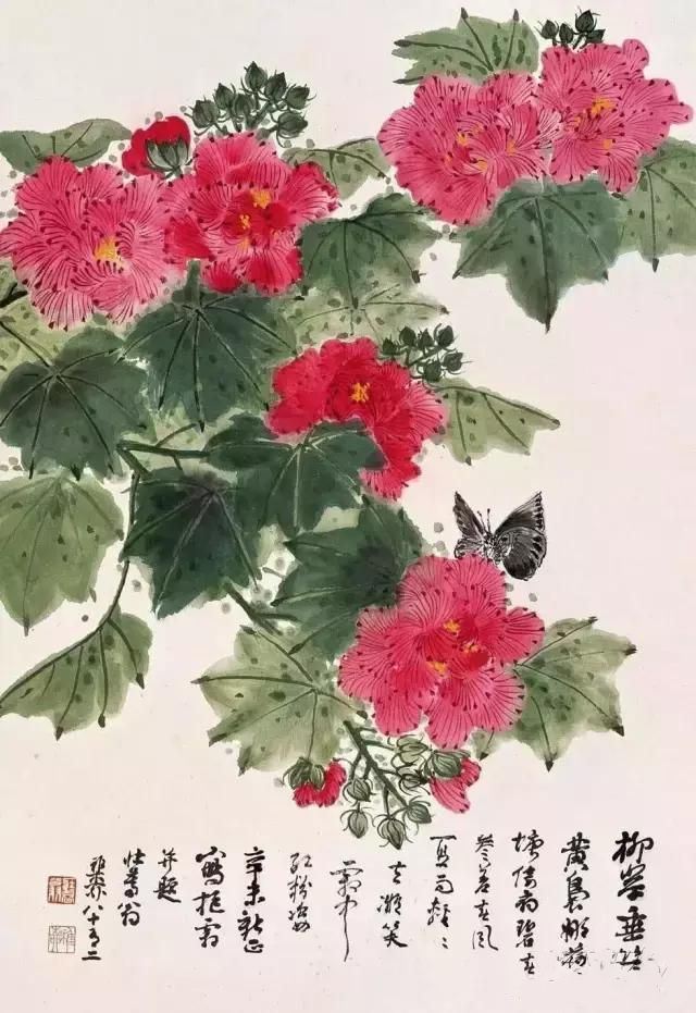 晚年画得最多的一种花卉便是芙蓉花,