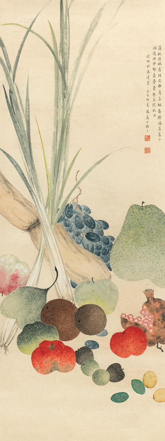 附图4。丁辅之 1942年作 果蔬清供 立轴