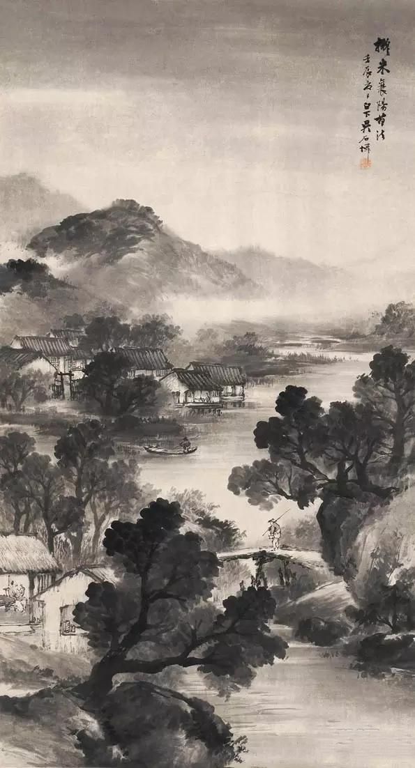 吴石仙(1845-1916),名庆云,字石仙,后以字行,晚号泼墨道人。上元(今南京)人,流寓上海。擅山水,山水气势雄厚,丘壑幽奇,初不为人重,既 赴日本归,乃长烟雨法,墨晕淋漓,烟云生动,峰峦林壑,阴阳向背处,皆能渲染入微。故其晦明之机、风雨之状,无不一一幻现而出,此盖参用西法,别出机杼, 故在当时有耳目一新之感,尤为沪上粤商所喜。黄宾虹则认为:"吴石仙作画,在楼上置水缸,将纸湿至潮晕,而后用笔涂出云烟,虽非不工,识者所不取传世作 品,以其无笔也。"又擅米芾、高克恭两家墨戏,惟气格较俗,无虚灵之气。